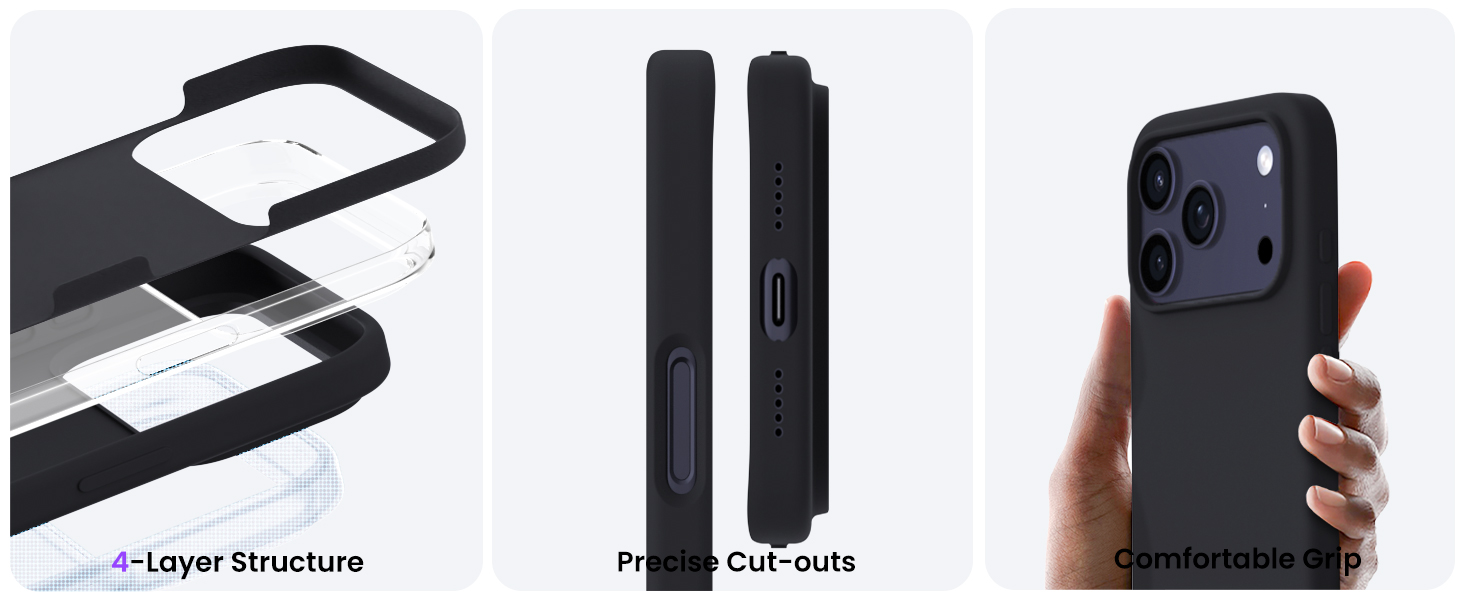 The back is designed with built-in magnetic support for a secure fit with commonly used magnetic accessories, making charging and daily use more convenient. The raised camera edge helps protect the lens when placed on flat surfaces, while the responsive button covers and precise cutouts provide easy access to charging ports, speakers, and buttons.